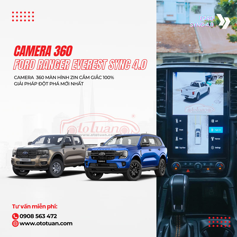 Camera 360 cho Ford Ranger Everest màn hình SYNC 4
